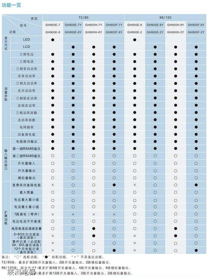 GH900E系列多功能儀表采用現(xiàn)代數(shù)字信號(hào)處理芯片和高精度的電能計(jì)量芯片、能夠精確穩(wěn)定地測(cè)量三相電網(wǎng)中的所有常用電力參數(shù):三相電壓、三相電流、有功功率、無(wú)功功率、視在功率、電網(wǎng)頻率、功率因數(shù)、電能、電壓不平衡度、電流不平衡度、平均電壓、相間電壓夾角、電壓總諧波,電壓2~63次分次諧波,電流總諾波、電流2-63次分次諧波,電壓Z大值Z小值,電流Z大值Z小值,兩個(gè)時(shí)區(qū)4種費(fèi)率8個(gè)時(shí)段。有功無(wú)功Z大需量,通過(guò)外部漏電(或零序電流互感器實(shí)現(xiàn)漏電(或零序)電流的測(cè)量、Z多32條開(kāi)關(guān)變位SOE事件記,輸入輸出接口Z多可配備:兩路電能膚沖輸出、兩路數(shù)字通迅接口、四路開(kāi)關(guān)量輸入。四路開(kāi)關(guān)量輸出、四路模擬量輸出。