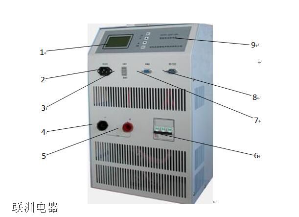 5. 電池輸入+ 6. 空氣開關(guān) 7. 采集器口 8. RS232 9. 操作面板