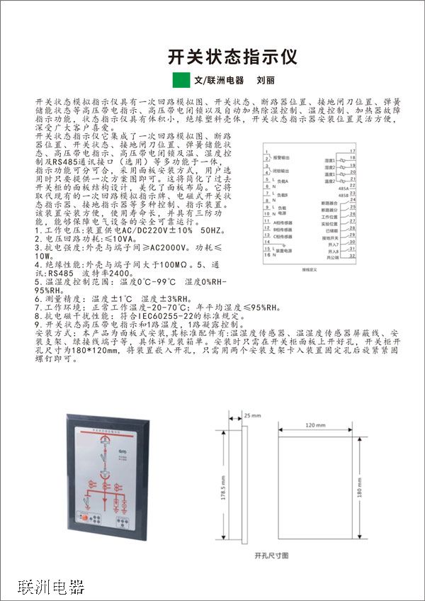 XGKF-H1 | 具有開關狀態動態模擬顯示、一次供電方案模擬圖。 | 用于3~35KV戶內開關柜,取代現有的一次回路模擬圖、帶電顯示器。具有斷路器分合閘指示、接地開關指示、自動加熱除濕控制器。適用于中置柜、手車柜、固定柜、環網等多種開關柜。 | 體積 小、抗干擾能力強、高可靠性、量身定做、美觀精致、塑料殼體、具有三防功能。 嵌入深度: 安裝方式:面板式 |