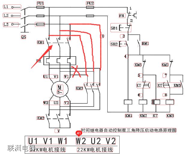 此圖是另一種參考,帶來的好處是能讓主接觸器KM1不承受那么大的電流,可以讓接觸器壽命更長,維護成本更低。二次控制圖跟上圖一樣,沒有改變,主要是一次圖紅色線的調(diào)整。