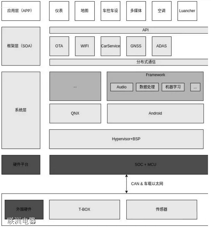 上面就是目前主流汽車座艙采用技術架構,我們從上到下依次介紹: