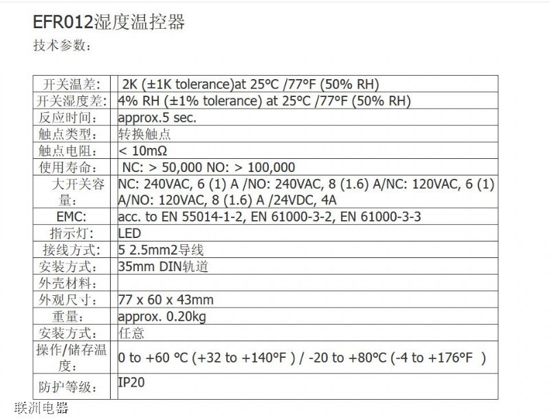 開關溫差 2K(±1K)at 25℃/77°/77° F(50%RH)
