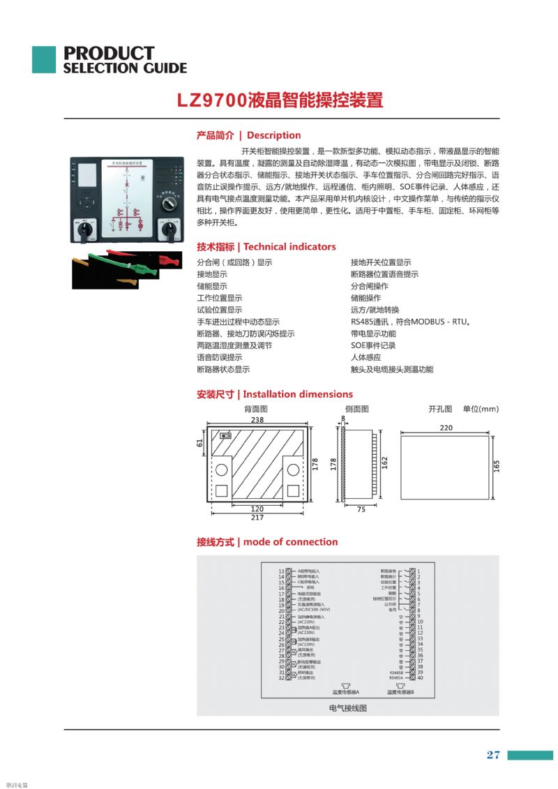 開關柜智能操控裝置GX-1600產品功能強大,適用于3KV-35KV 戶內開關柜,手車柜、固定柜、中置柜、環網柜等多種開關柜。具有動態一次模擬圖、高壓帶電顯示、斷路器分合狀態指示、儲能指示、接地開關狀態指示、自動加熱除濕數據顯示及控制、小車位置指示、分合閘回路完好指示、人體感應及柜內照明、語音防誤提示功能,本裝置可取代現有的一次回路模擬圖、帶電顯示器、自動加熱除濕控制器、斷路器分合按鈕等獨立安裝的設備。具有RS485通訊接口,MODBUS通訊協議。使開關柜進一步智能化、數字化、網絡化,方便廣大用戶使用與操作。