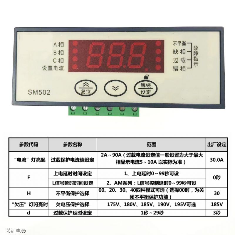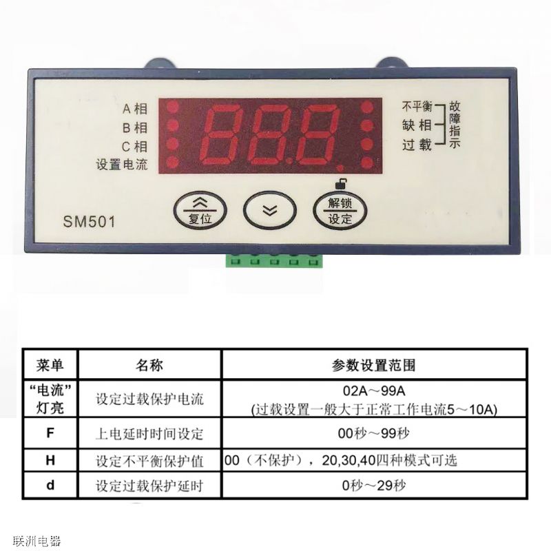SM502/501數顯電流過載相序保護的說明書