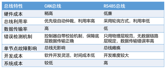 主要考慮的是兩方面問題,485和CAN的成本和速度。