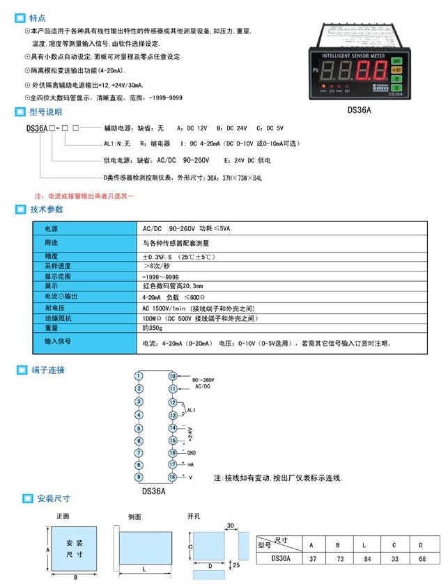 DS36A-NA,DS36A-RB,DS36A-IA智能數顯表