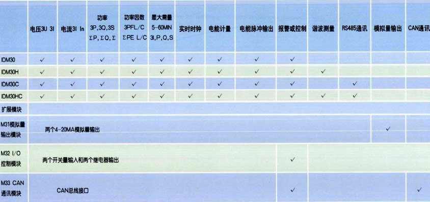 IDM30系列智能數字測控儀表是一種采用智能化技術的數字式電力測控儀表,主要用于交流高低壓電力系統之中,主要功能有測量顯示三相電流、三相電壓、有功無功功率、功率因數、頻率、正反向電能、諧波、RS485 MODBUS RTU通訊,此系列常用型號有IDM30、IDM30H、IDM30C、IDM30HC、IDM30S。